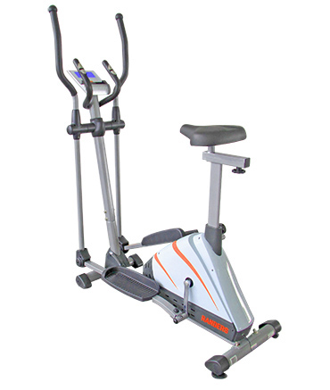 Entrenador elíptico electromagnético de doble acción que funciona de forma suave, silenciosa, duradera, compacta y cómoda. Sistema de resistencia electromagnética con control de tensión motorizado. Gran pantalla LCD . 6 programas preestablecidos. Mide: Tiempo, Velocidad, Distancia, Calorías, Edad, Pulso y Frecuencia Cardíaca Objetivo.
